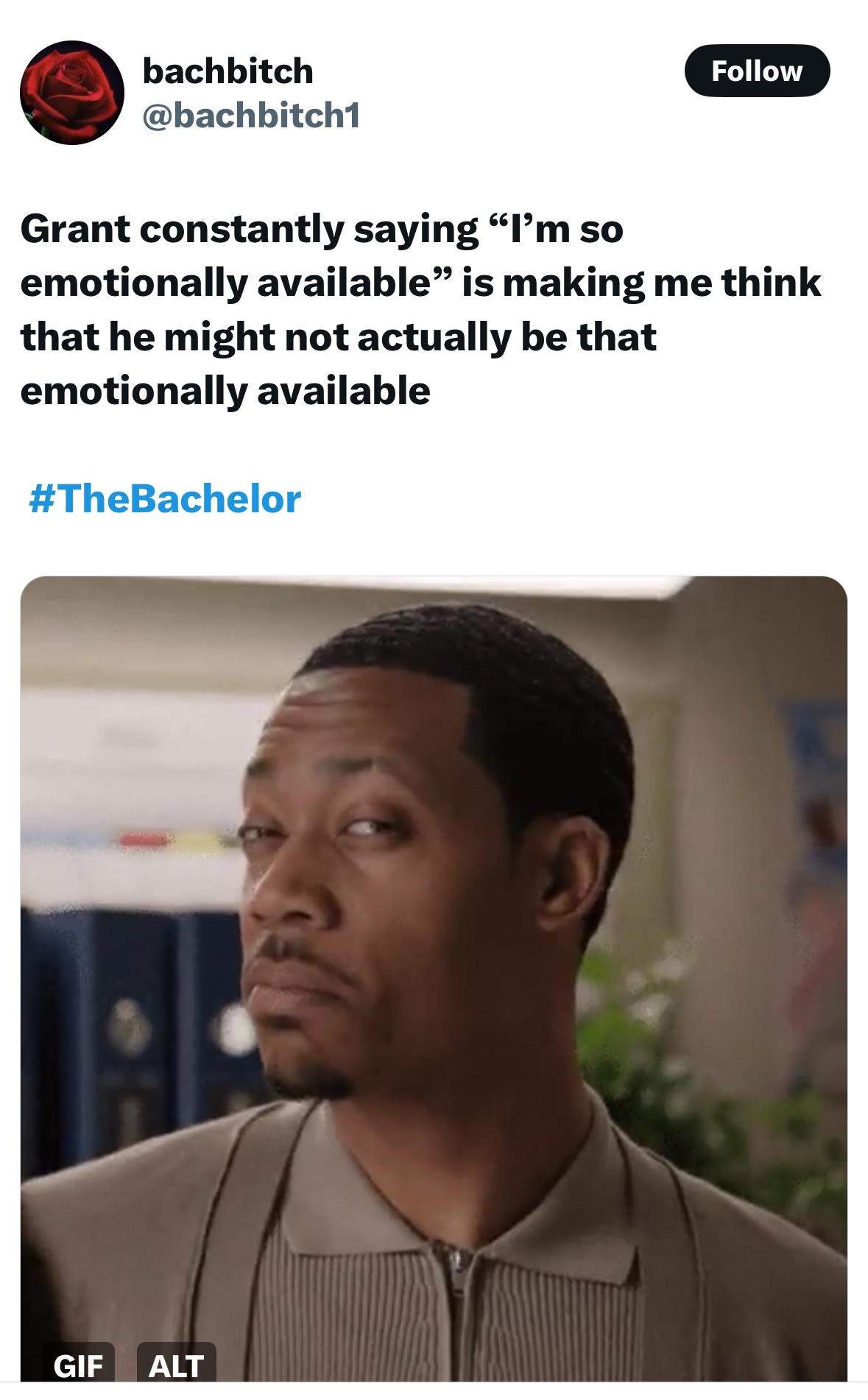 But alas, here we are with Grant. I will persevere solely because of my love for Litia and Alexe and praying to God that we get a Bachelor in Paradise with some of these women on it. (let’s manifest that together, thanks).
